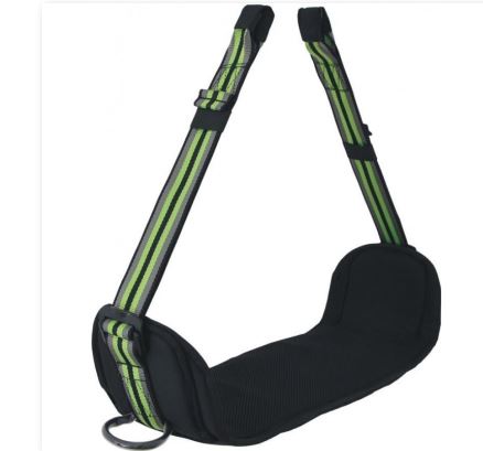 Totalmente ajustable, dispone de 3 anillas en D para el enganche de los accesorios y de una hebilla para enganchar al cinturón del arnés cuando no se usa.