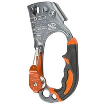 Innovador puño bloqueador con polea integrada para uso en combinación con un descensor autofrenante (p.ej. SPARROW), la cuerda de trabajo que sale del descensor desliza sobre la polea integrada lo que reduce la fricción y facilita el ascenso.