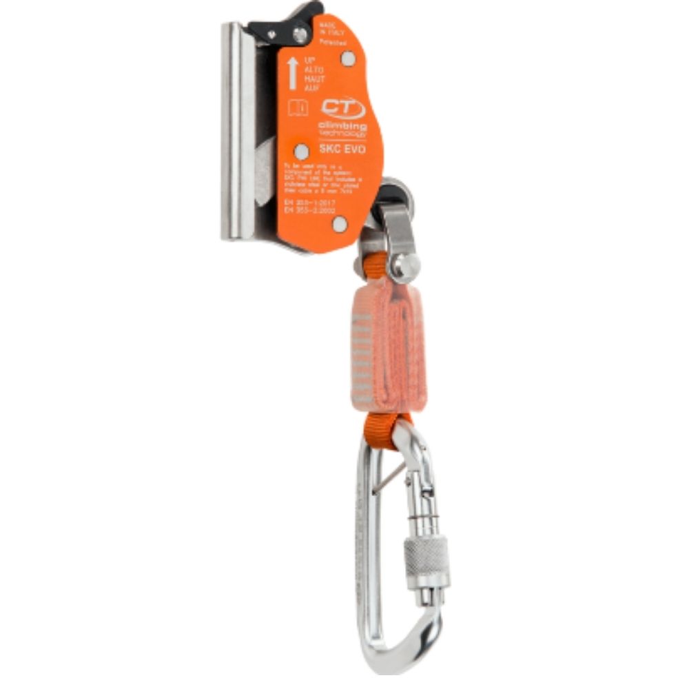 El dispositivo se abre sólo si la maniobra se lleva a cabo en esta secuencia, eliminando así el peligro de una abertura accidental Peso: 380 gr Resistencia entre 50 a 140 kg Dimensiones: 85 x 190 mm Certificaciones: EN 353-1:2014 EN 353-2:2002 CE 0333 Marca: Climbing Technology