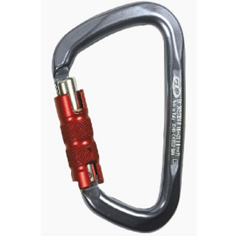 Mosquetón de seguridad en acero tipo D con seguro automático, triple seguro que previene accidentes por apertura.